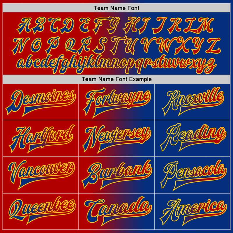 Custom Royal Red-Yellow Bomber Full-Snap Varsity Letterman Gradient Fashion Jacket