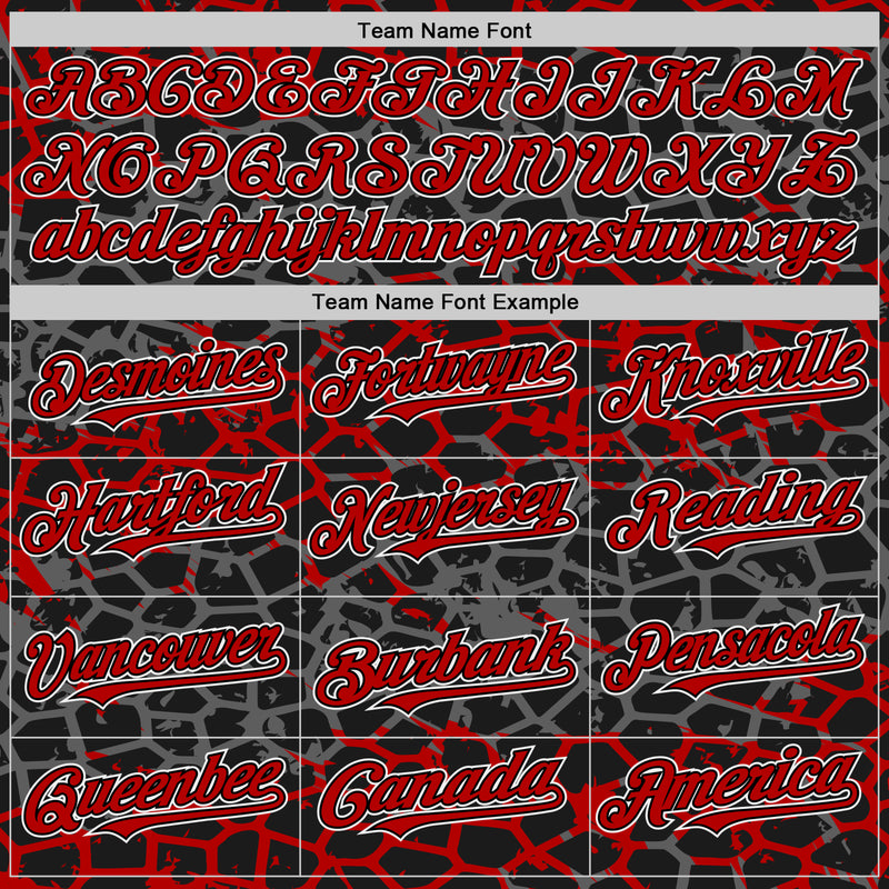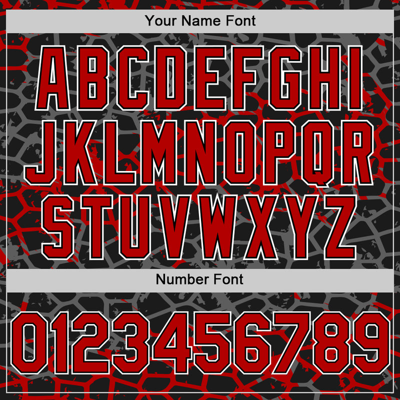 Custom Black Red-White Abstract Network 3D Pattern Design Bomber Full-Snap Varsity Letterman Hoodie Jacket