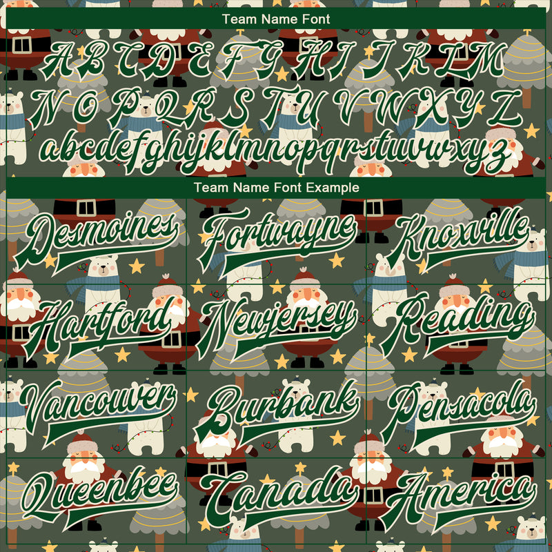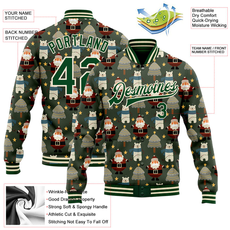 Custom Green Green-Cream Christmas 3D Bomber Full-Snap Varsity Letterman Jacket