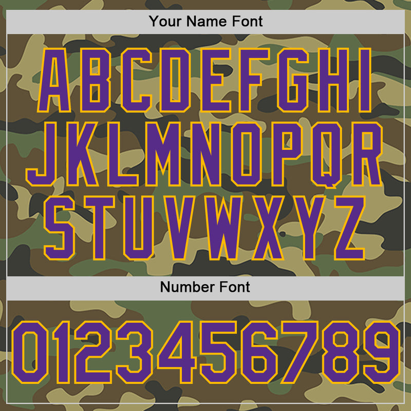 Custom Camo Purple-Gold Bomber Full-Snap Varsity Letterman Salute To Service Hoodie Jacket