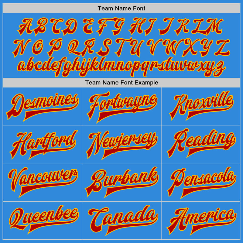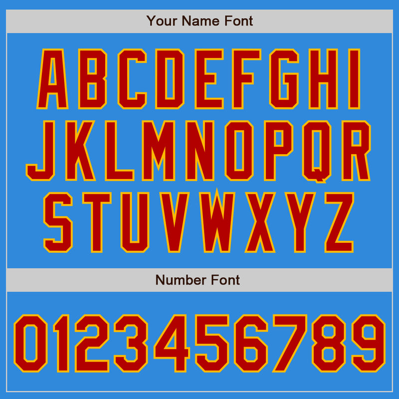 Custom Powder Blue Red-Gold Bomber Full-Snap Varsity Letterman Jacket