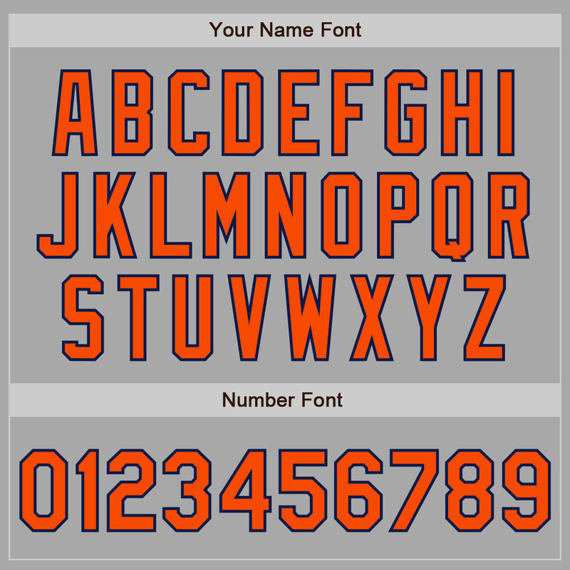 Custom Gray Orange-Navy Bomber Full-Snap Varsity Letterman Two Tone Jacket