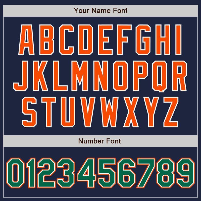 Custom Navy Kelly Green-Orange Bomber Full-Snap Varsity Letterman Jacket