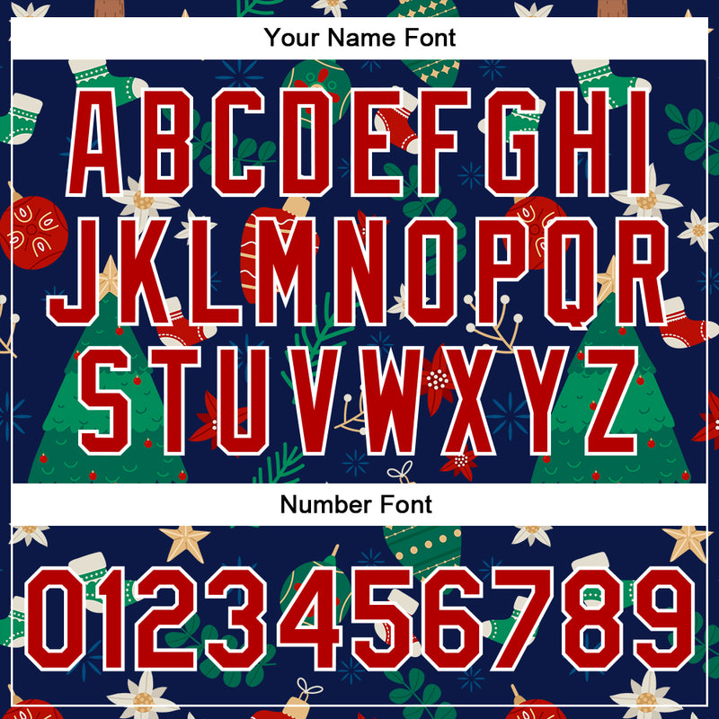 Custom Navy Red-White Christmas 3D Bomber Full-Snap Varsity Letterman Jacket