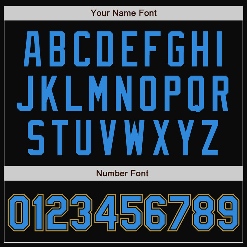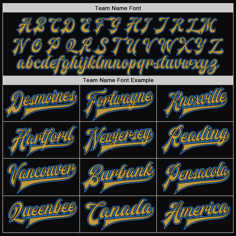Custom Black Powder Blue-Old Gold Bomber Full-Snap Varsity Letterman Two Tone Jacket