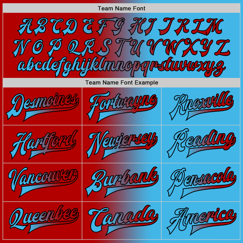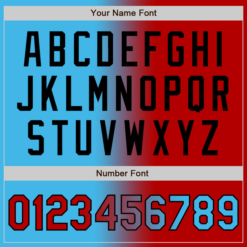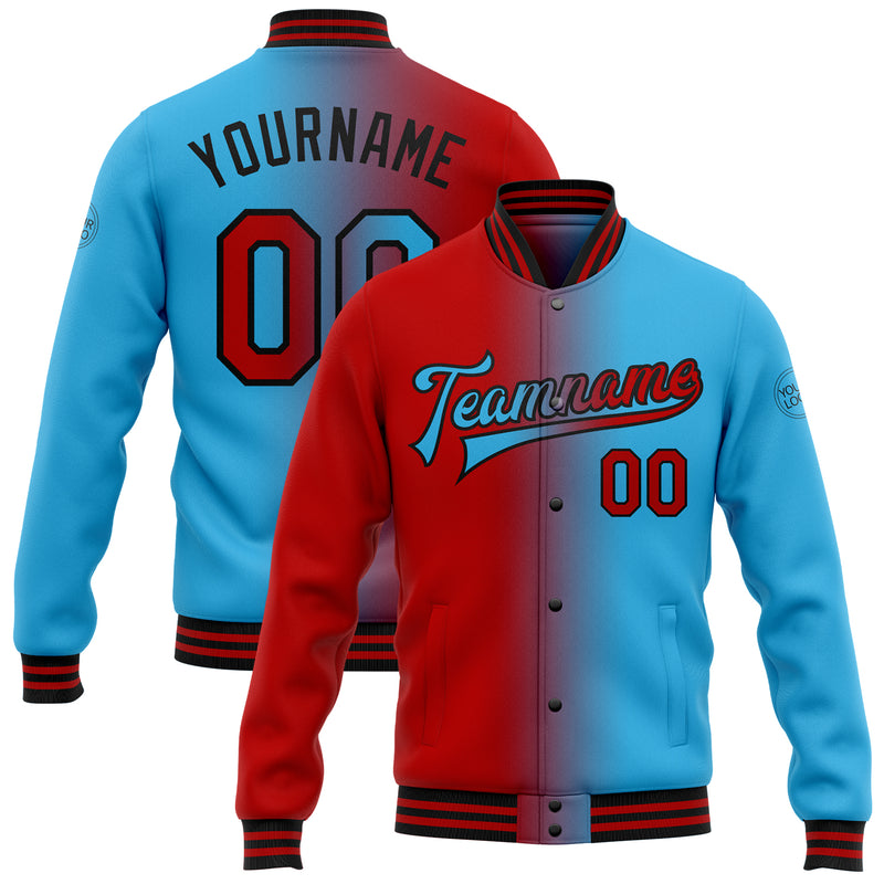 Custom Sky Blue Red-Black Bomber Full-Snap Varsity Letterman Gradient Fashion Jacket