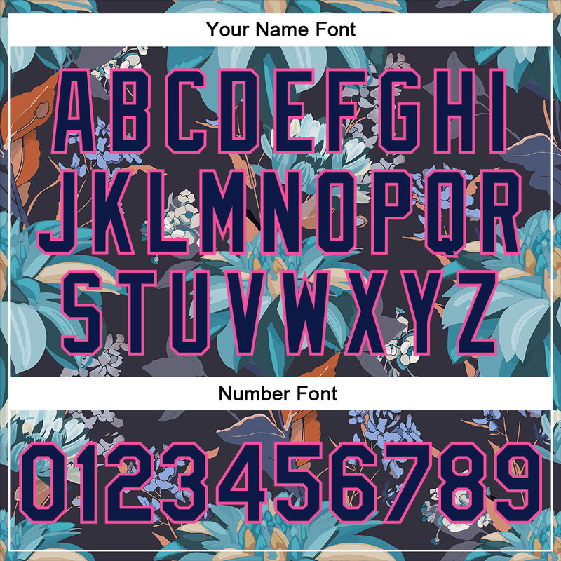 Custom Navy Pink Flowers 3D Pattern Design Bomber Full-Snap Varsity Letterman Jacket