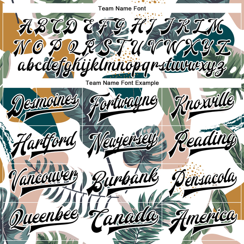 Custom White Black Leaves 3D Pattern Design Bomber Full-Snap Varsity Letterman Jacket