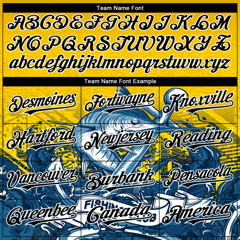 Custom Gold Black-White Marlin Fish Fishing 3D Bomber Full-Snap Varsity Letterman Hoodie Jacket