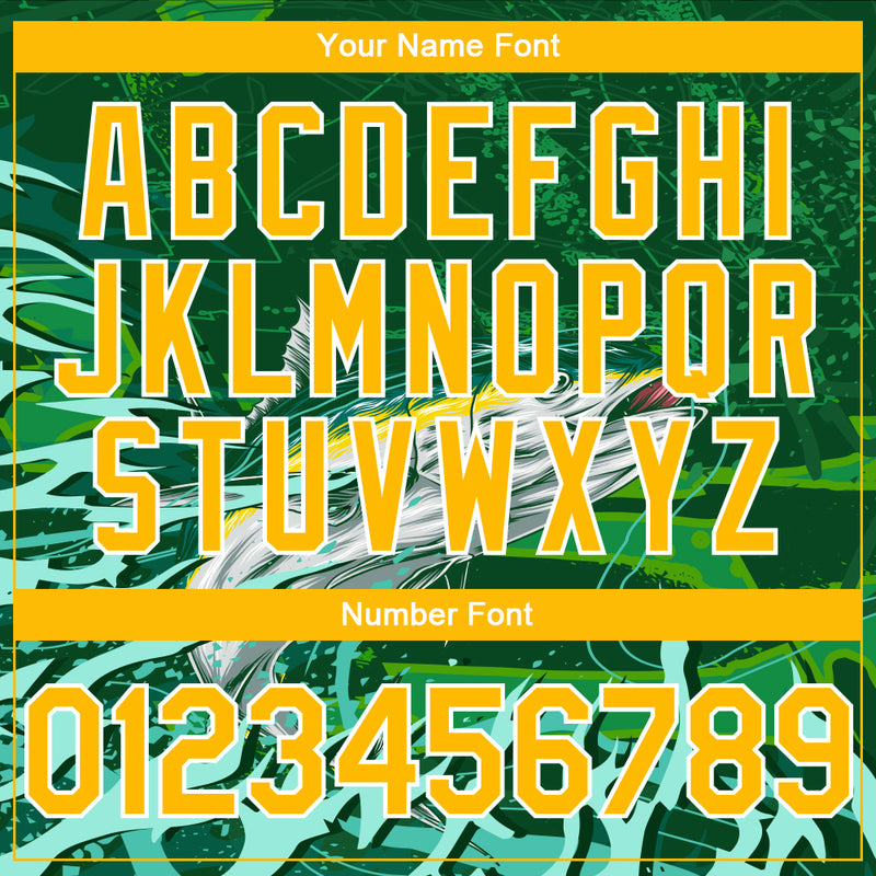 Custom Green Gold-White Tuna Fish Fishing 3D Bomber Full-Snap Varsity Letterman Hoodie Jacket