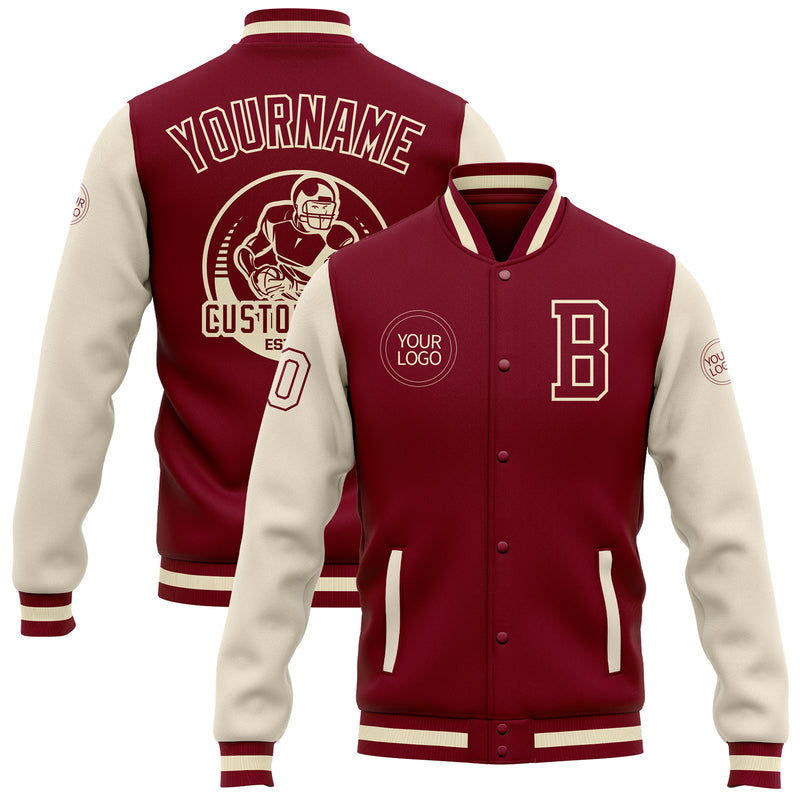 Custom Crimson Cream-Maroon Bomber Full-Snap Varsity Letterman Two Tone Jacket