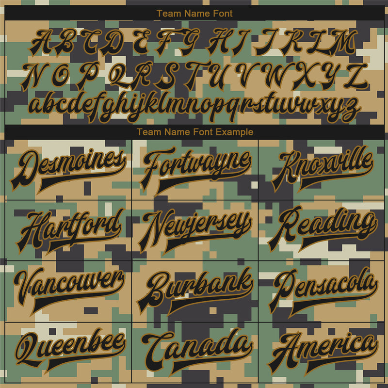 Custom Camo Old Gold-Black Digital Camouflage 3D Bomber Full-Snap Varsity Letterman Salute To Service Jacket