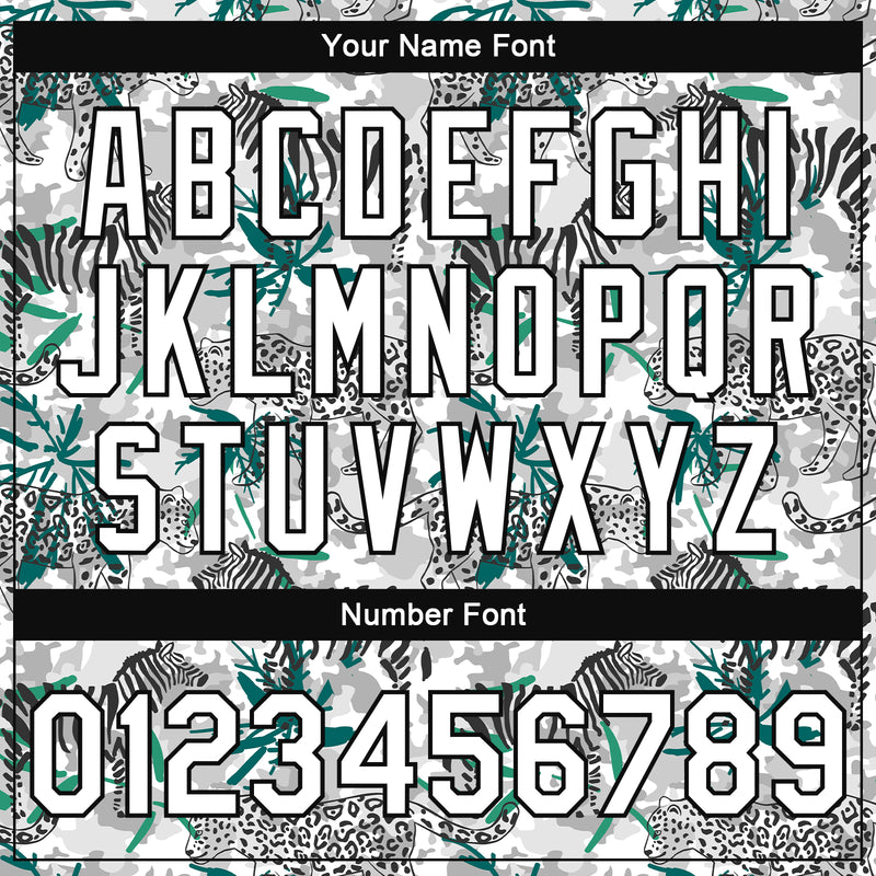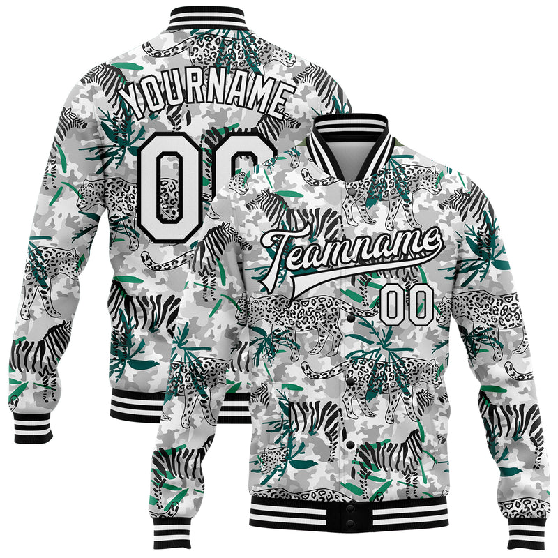 Custom Camo White-Black Tropical Jungle Animal 3D Pattern Design Bomber Full-Snap Varsity Letterman Salute To Service Jacket