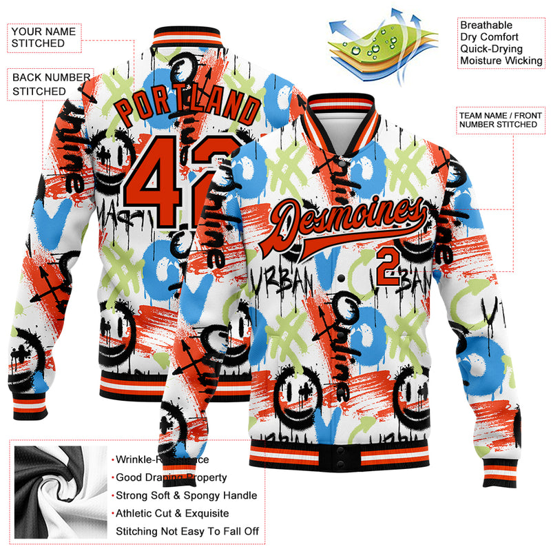 Custom Graffiti Pattern Orange-Black Abstract Grunge Art 3D Bomber Full-Snap Varsity Letterman Jacket