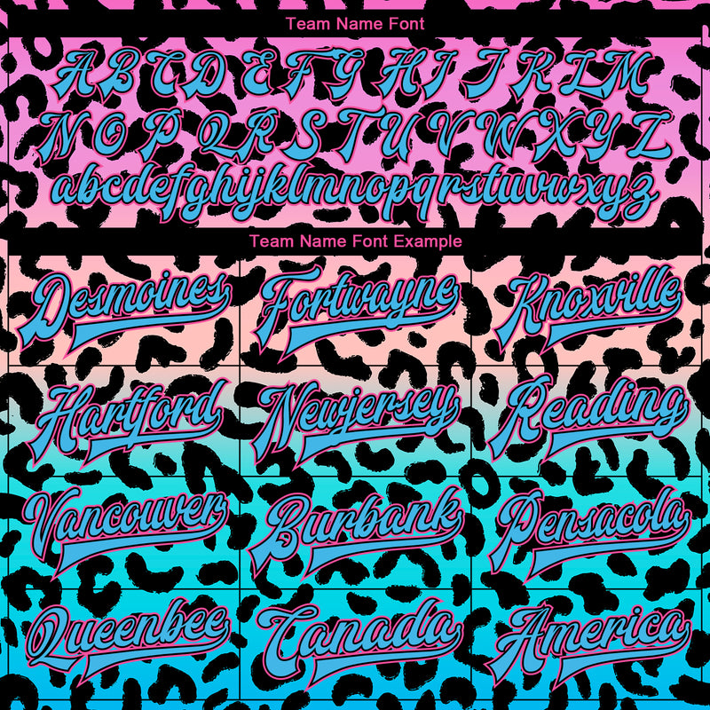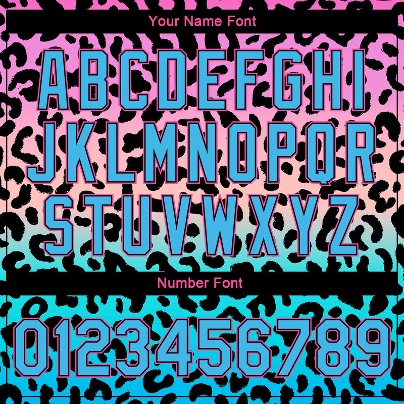 Custom Pink Sky Blue-Black Leopard Print 3D Pattern Design Bomber Full-Snap Varsity Letterman Jacket
