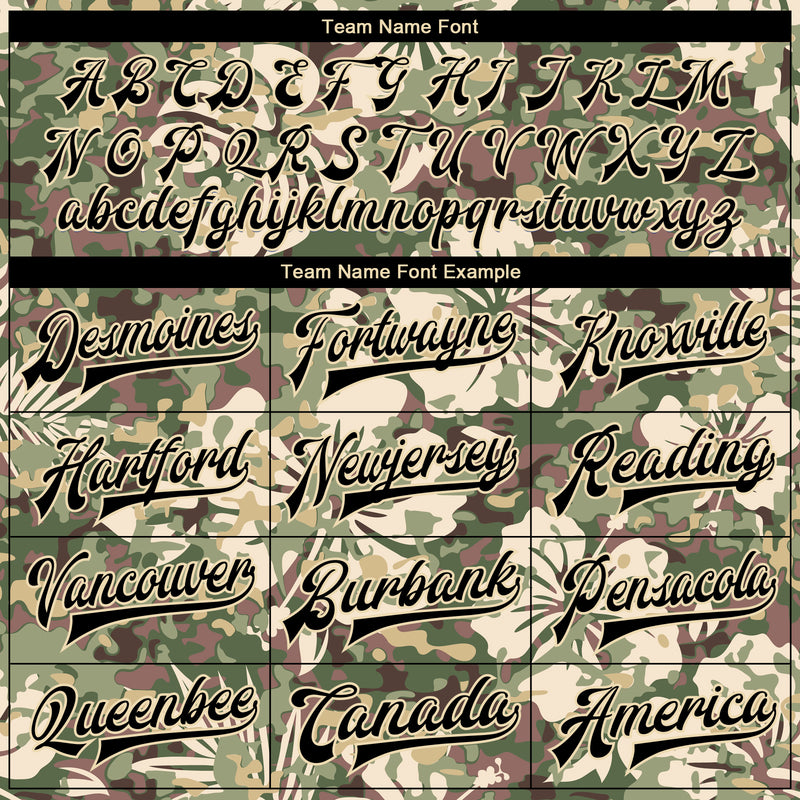 Custom Camo Black-Cream Hawaii Palm Leaves 3D Bomber Full-Snap Varsity Letterman Salute To Service Jacket