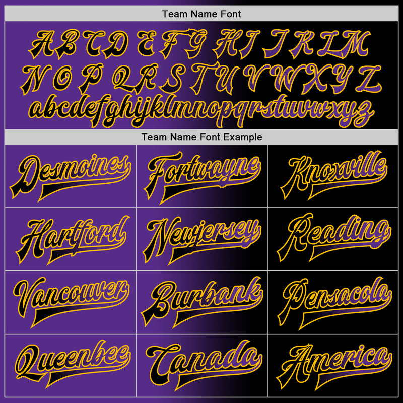 Custom Black Purple-Gold Bomber Full-Snap Varsity Letterman Gradient Fashion Jacket