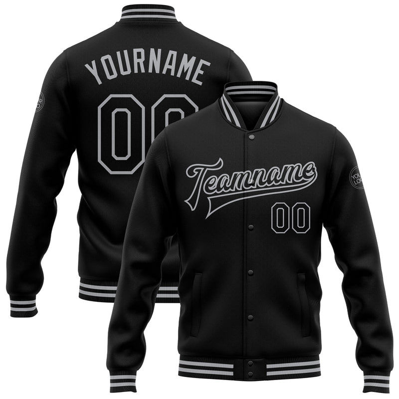 Custom Black Gray Bomber Full-Snap Varsity Letterman Jacket