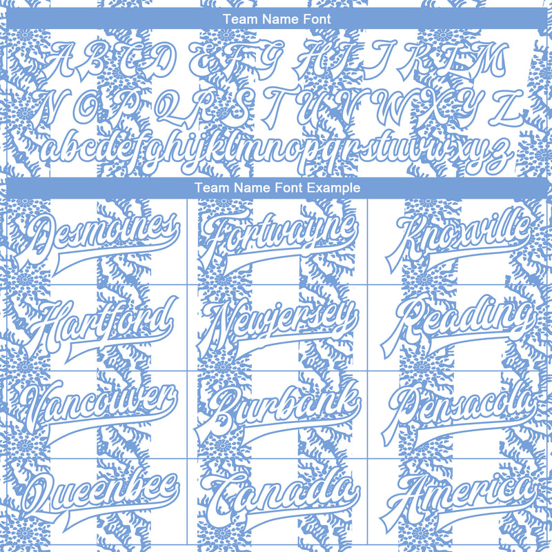 Custom Light Blue-White 3D Pattern Design Bomber Full-Snap Varsity Letterman Jacket