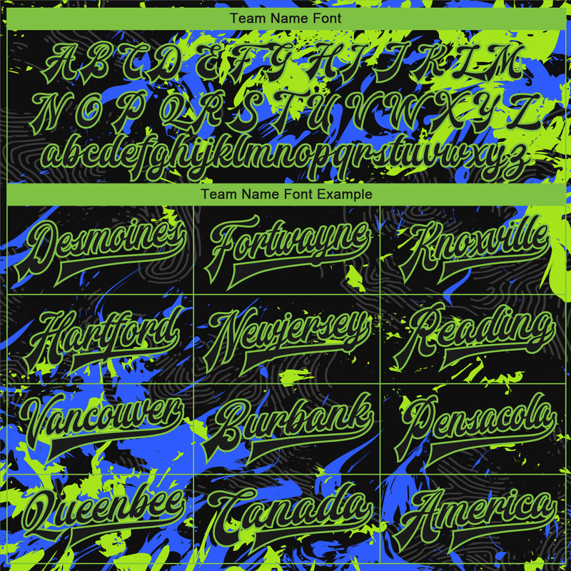 Custom Black Neon Green-Royal 3D Pattern Design Bomber Full-Snap Varsity Letterman Jacket