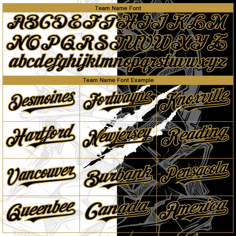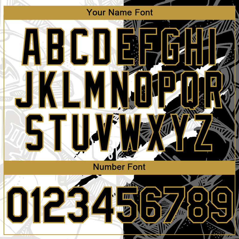 Custom Graffiti Pattern Black-Old Gold Scratch 3D Bomber Full-Snap Varsity Letterman Hoodie Jacket