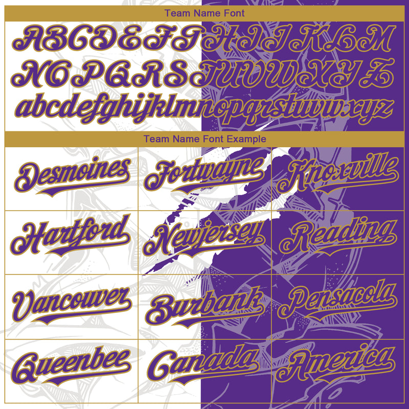 Custom Graffiti Pattern Purple-Old Gold Scratch 3D Bomber Full-Snap Varsity Letterman Hoodie Jacket