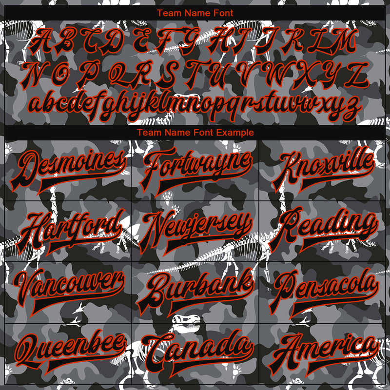 Custom Camo Black-Orange Dinosaur 3D Pattern Design Bomber Full-Snap Varsity Letterman Salute To Service Jacket