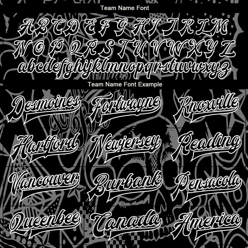 Custom Graffiti Pattern Black-White Skull Fashion 3D Bomber Full-Snap Varsity Letterman Jacket
