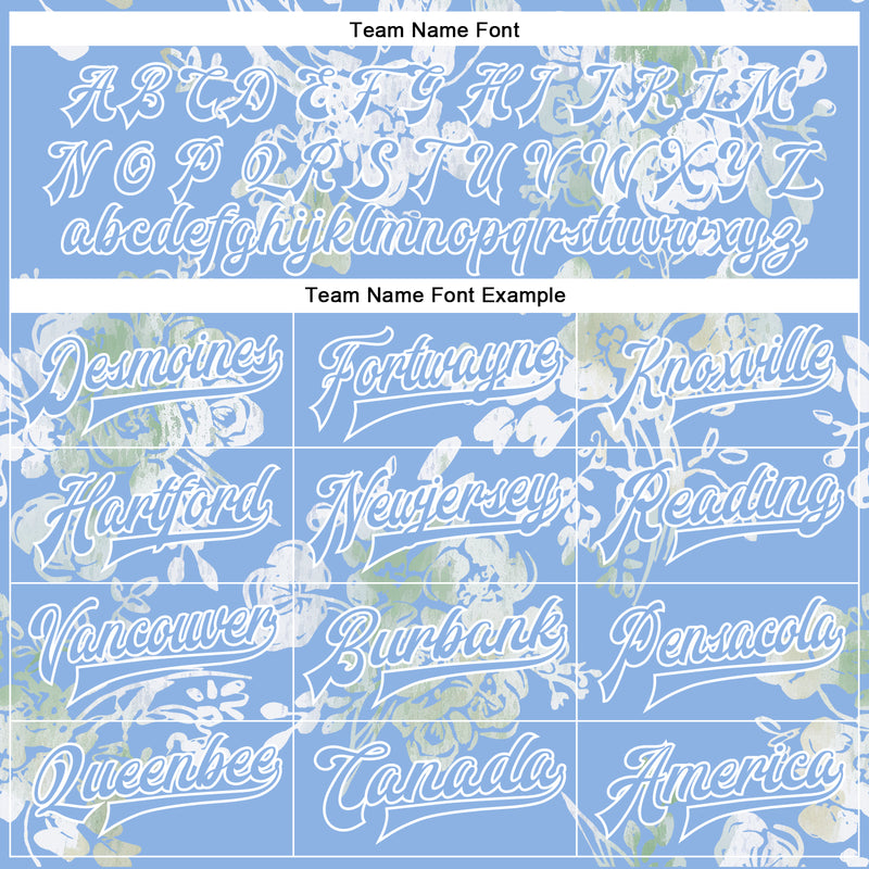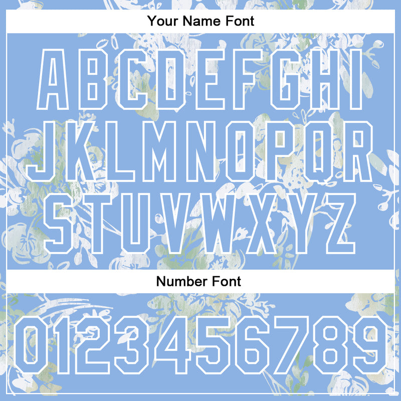 Custom Light Blue White Plant And Flower 3D Pattern Design Bomber Full-Snap Varsity Letterman Jacket