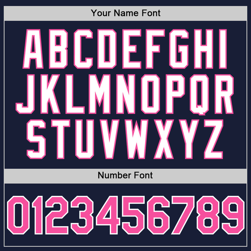 Custom Navy Pink-White Bomber Full-Snap Varsity Letterman Hoodie Jacket