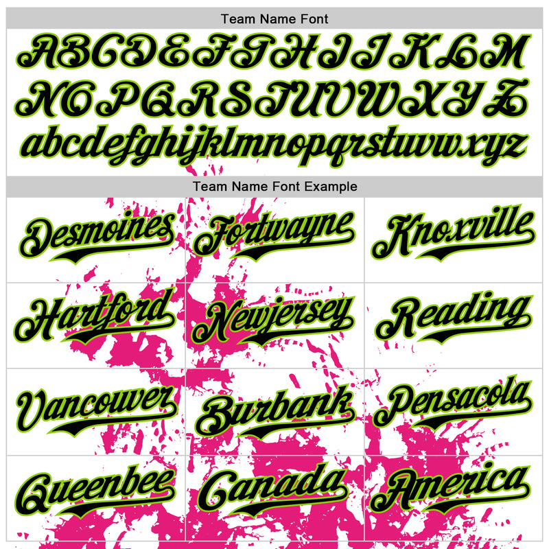 Custom White Neon Green Hot Pink-Black Splash Art 3D Pattern Design Bomber Full-Snap Varsity Letterman Hoodie Jacket