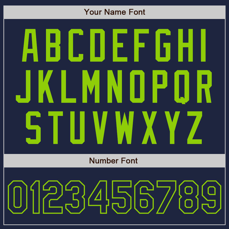 Custom Navy Neon Green Bomber Full-Snap Varsity Letterman Jacket