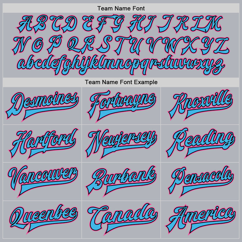 Custom Gray Pink Sky Blue-Black Bomber Full-Snap Varsity Faux Leather Letterman Jacket