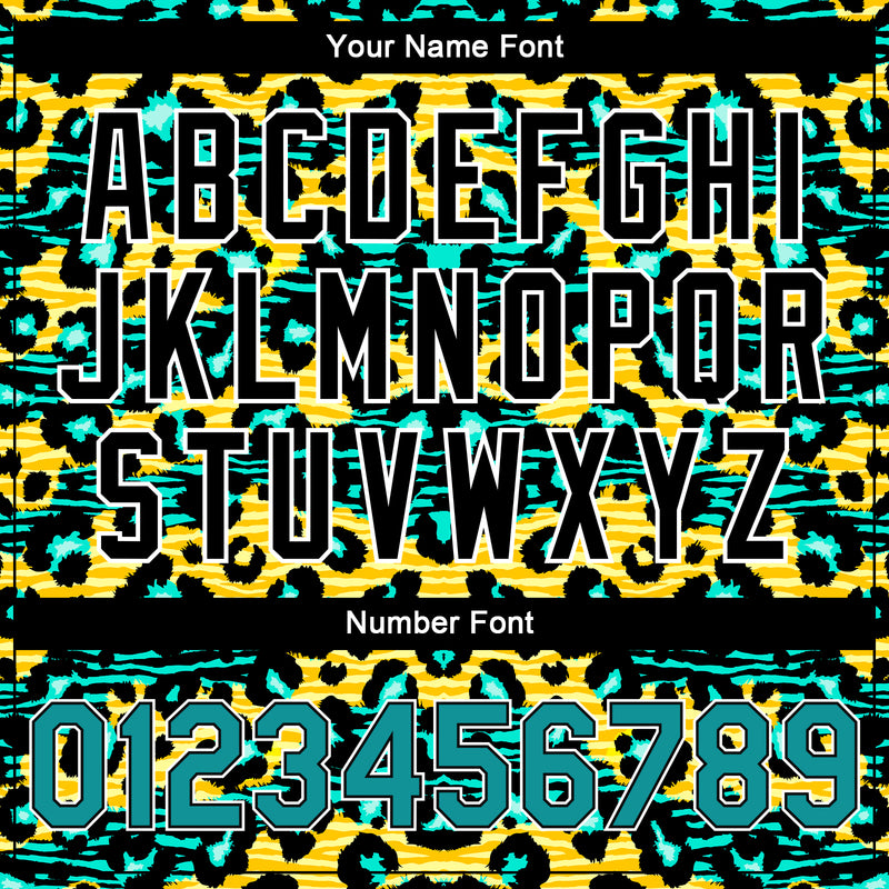 Custom Gold Teal-Black Leopard And Zebra Print 3D Pattern Design Bomber Full-Snap Varsity Letterman Jacket