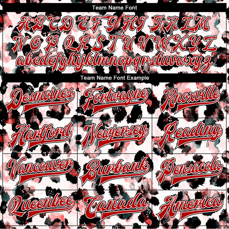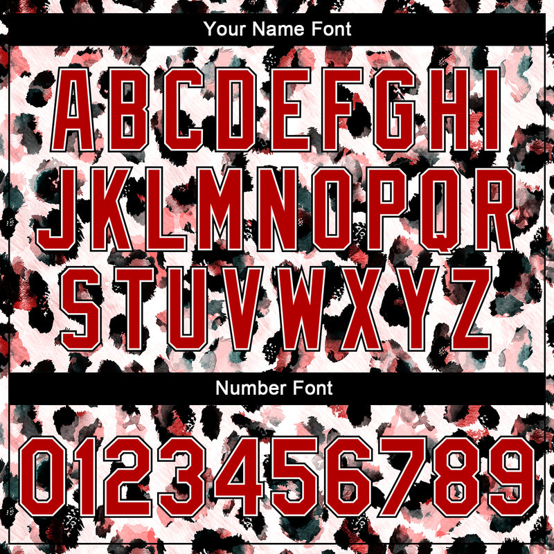 Custom White Red-Black Leopard Print 3D Pattern Design Bomber Full-Snap Varsity Letterman Jacket