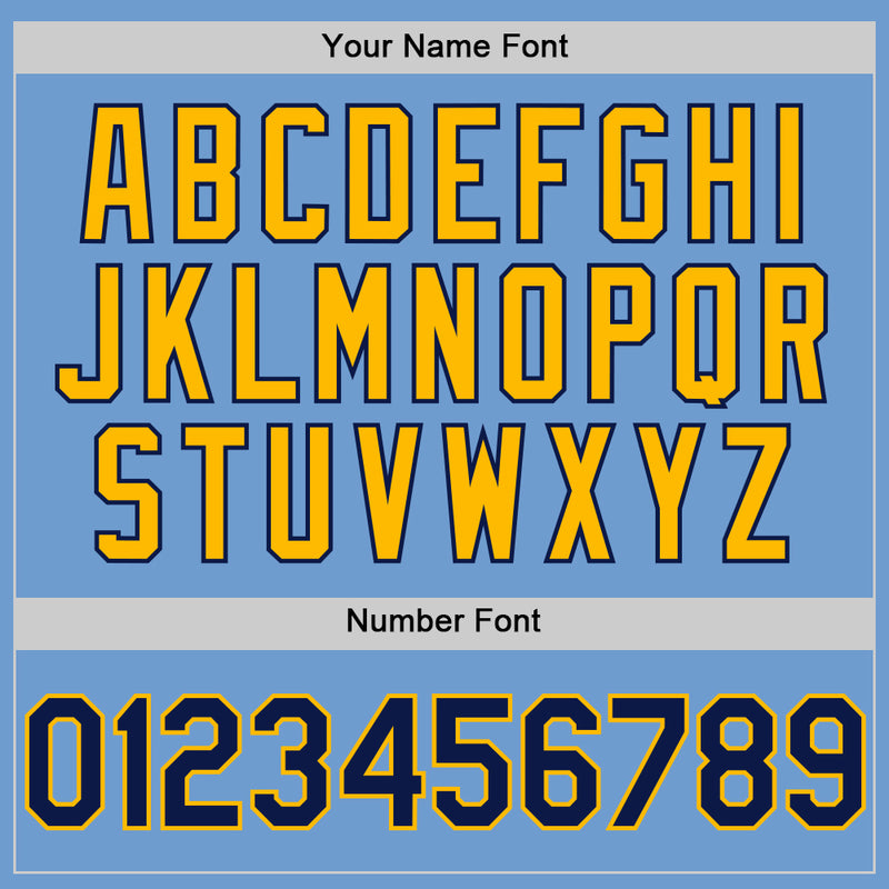 Custom Light Blue Navy-Gold Bomber Full-Snap Varsity Letterman Two Tone Hoodie Jacket