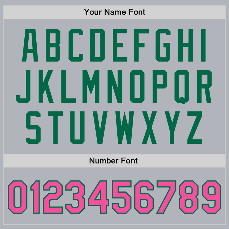 Custom Gray Pink-Kelly Green Bomber Full-Snap Varsity Faux Leather Letterman Jacket