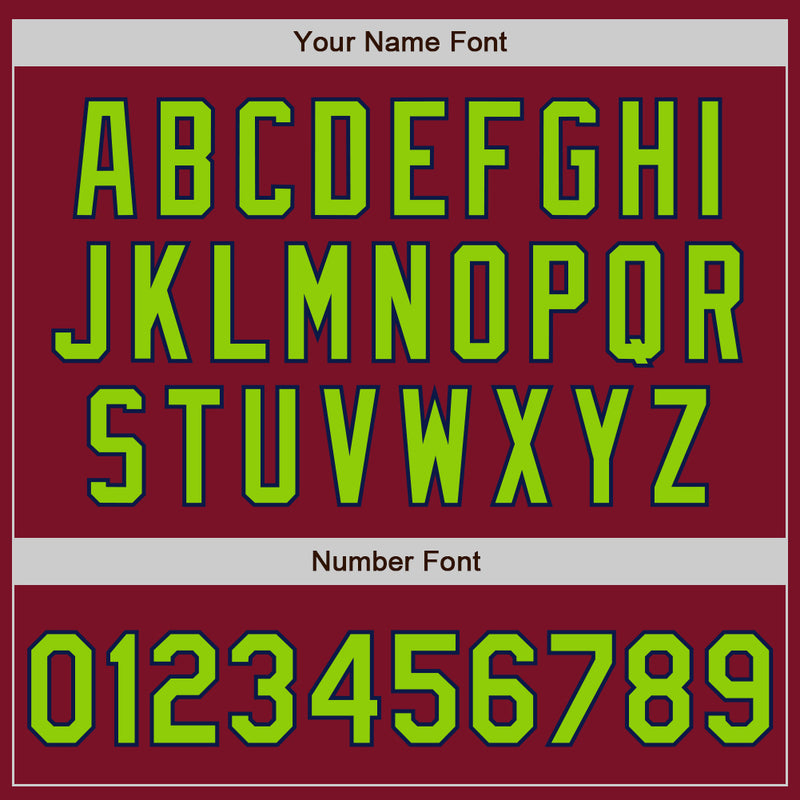 Custom Crimson Neon Green-Navy Bomber Full-Snap Varsity Letterman Two Tone Jacket