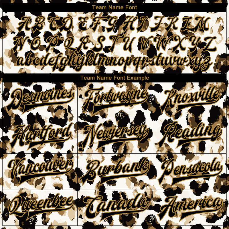 Custom White Black-Old Gold Leopard Print 3D Pattern Design Bomber Full-Snap Varsity Letterman Jacket