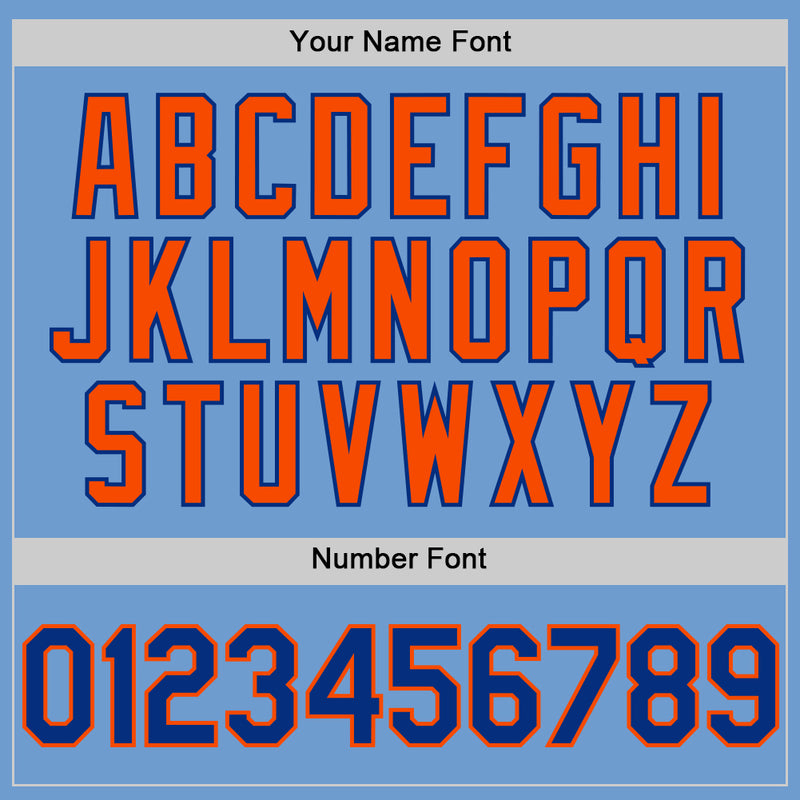 Custom Light Blue Royal-Orange Bomber Full-Snap Varsity Letterman Two Tone Hoodie Jacket