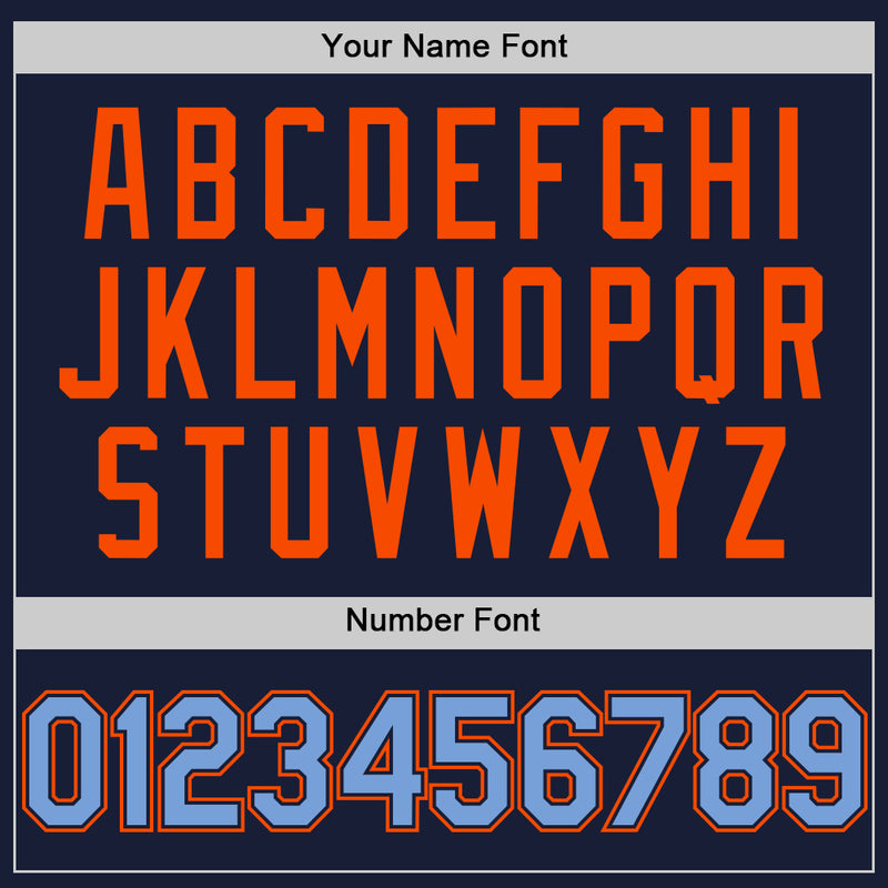 Custom Navy Light Blue-Orange Bomber Full-Snap Varsity Letterman Two Tone Hoodie Jacket