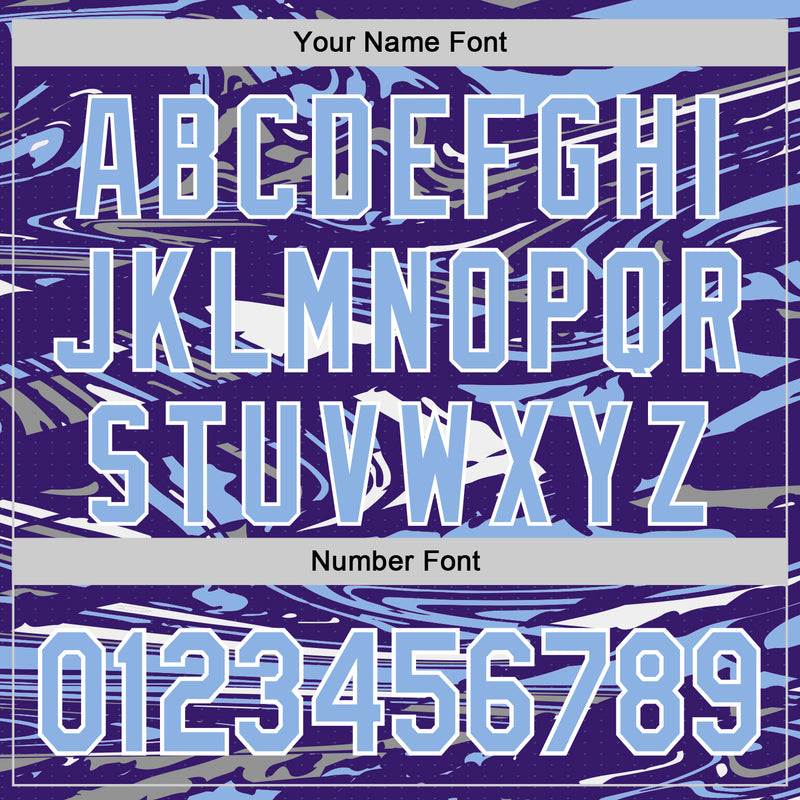 Custom Figure Light Blue Purple-White Fluid Pattern Bomber Full-Snap Varsity Letterman Hoodie Jacket