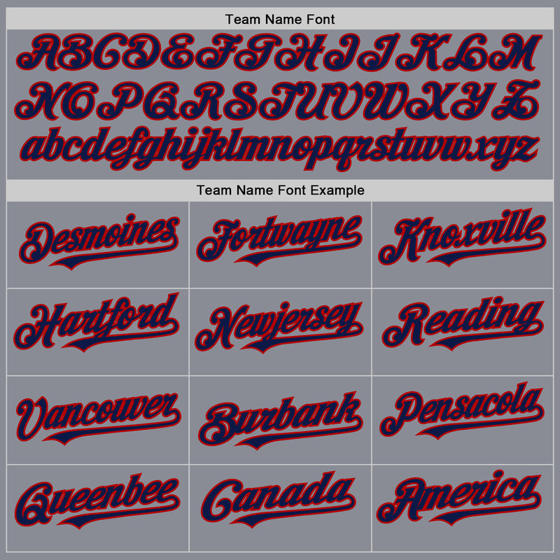 Custom Gray Navy-Red Bomber Full-Snap Varsity Letterman Hoodie Jacket