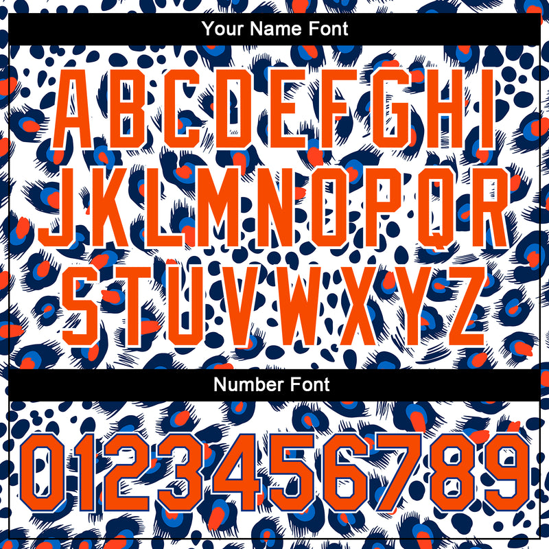 Custom White Orange-Royal Leopard Print 3D Pattern Design Bomber Full-Snap Varsity Letterman Jacket