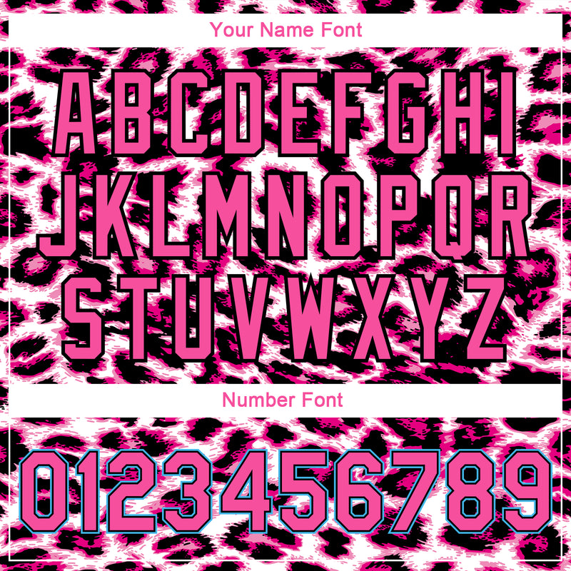 Custom Pink Sky Blue-Black Leopard Print 3D Pattern Design Bomber Full-Snap Varsity Letterman Jacket