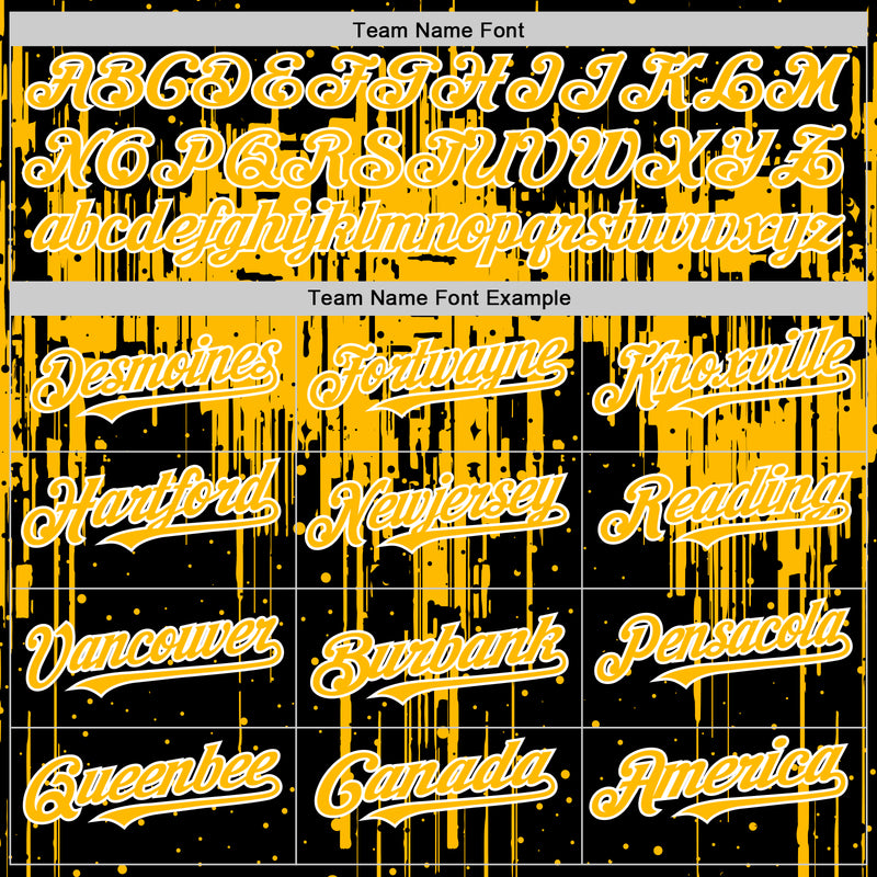 Custom Black Gold-White Dripping Splatter Bomber Full-Snap Varsity Letterman Hoodie Jacket