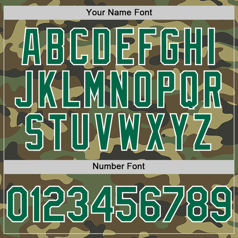 Custom Camo Kelly Green-White Bomber Full-Snap Varsity Letterman Salute To Service Hoodie Jacket