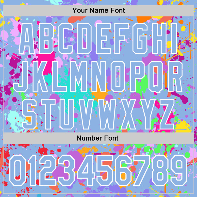Custom Graffiti Pattern Light Blue-White Splash Bomber Full-Snap Varsity Letterman Hoodie Jacket