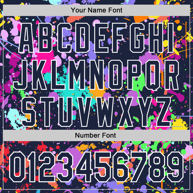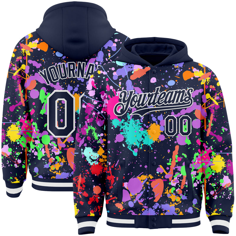 Custom Graffiti Pattern Navy-White Splash Bomber Full-Snap Varsity Letterman Hoodie Jacket