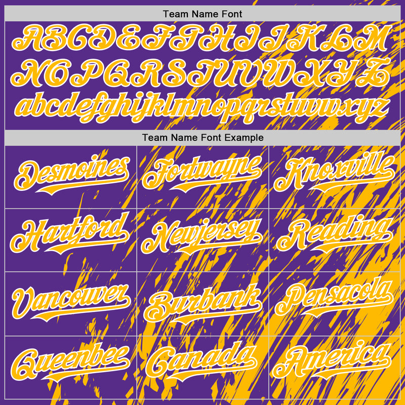 Custom Purple Gold-White 3D Pattern Design Bomber Full-Snap Varsity Letterman Hoodie Jacket